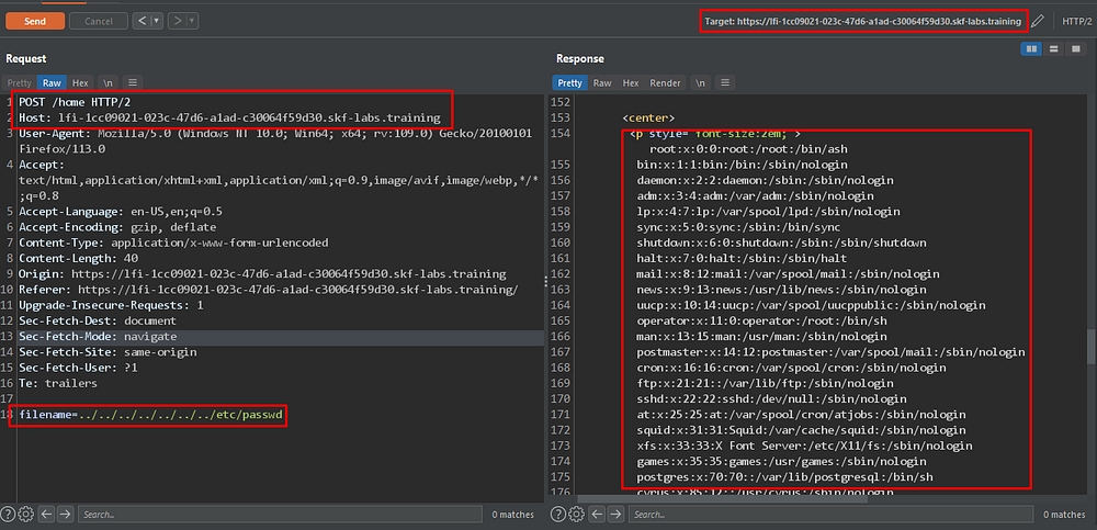 vulnerable to Local File Inclusion (LFI) attacks. By sending a POST