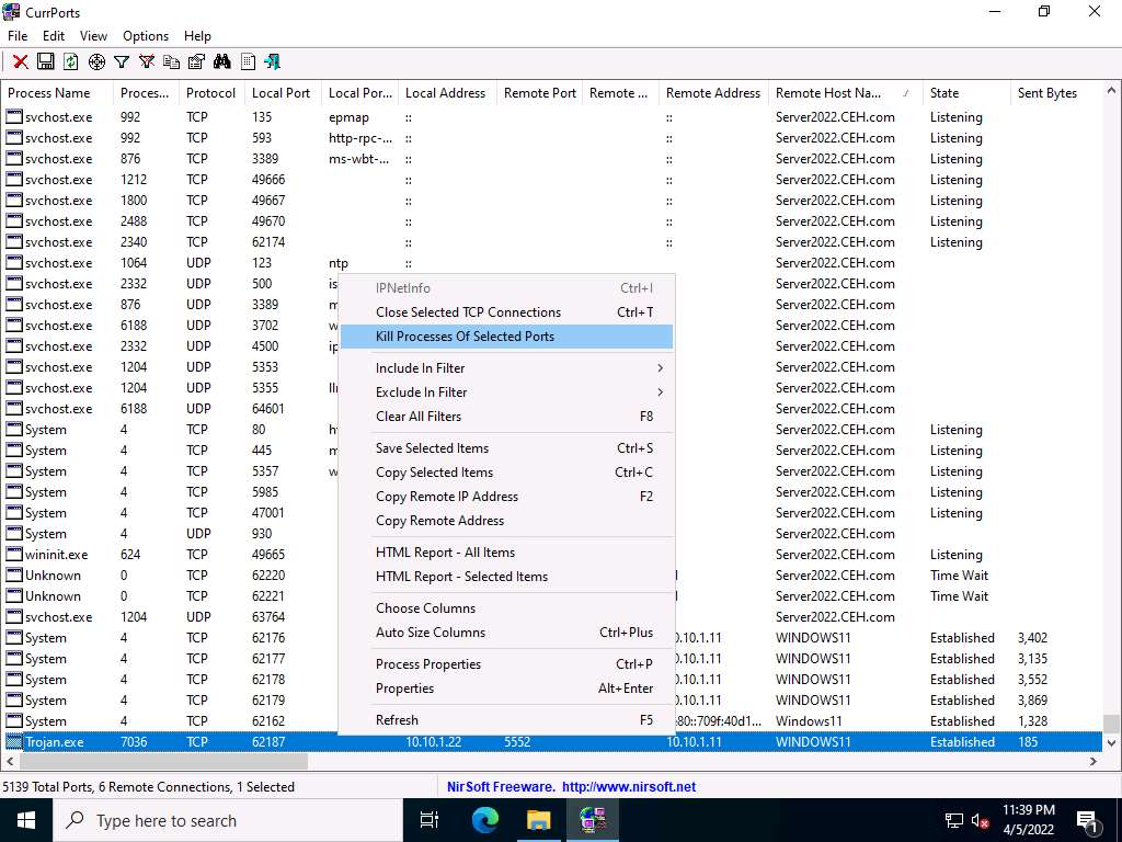 Screenshot Because Trojan.exe is a malicious process, you may end the process by right-clicking on it and selecting Kill Processes Of Selected Ports from the context menu.