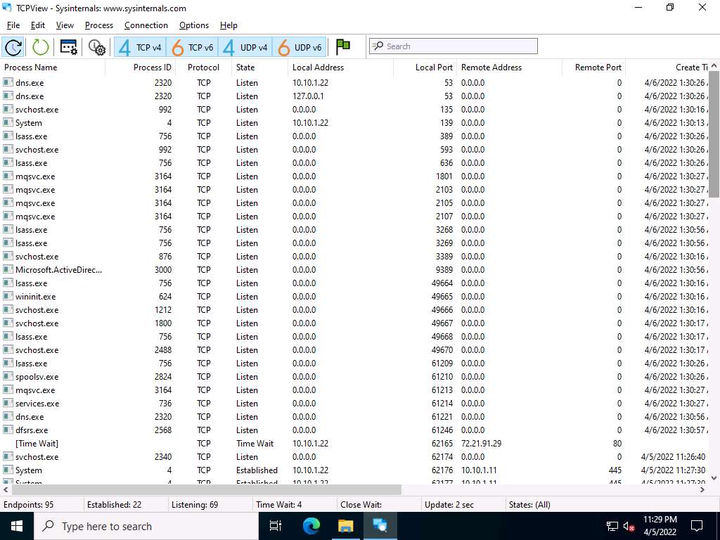 The TCPView main window appears, displaying the details such as Process, ProcessId, Protocol, Local Address, Local Port, Remote Address, Remote Port, and State, as shown in the screenshot.