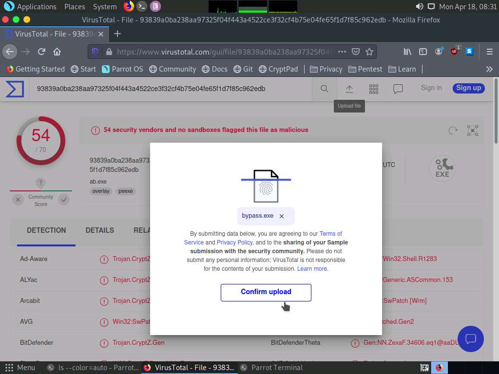 Screenshot After selecting the file click on Confirm upload button, virustotal will analyze the detection of malicious file.