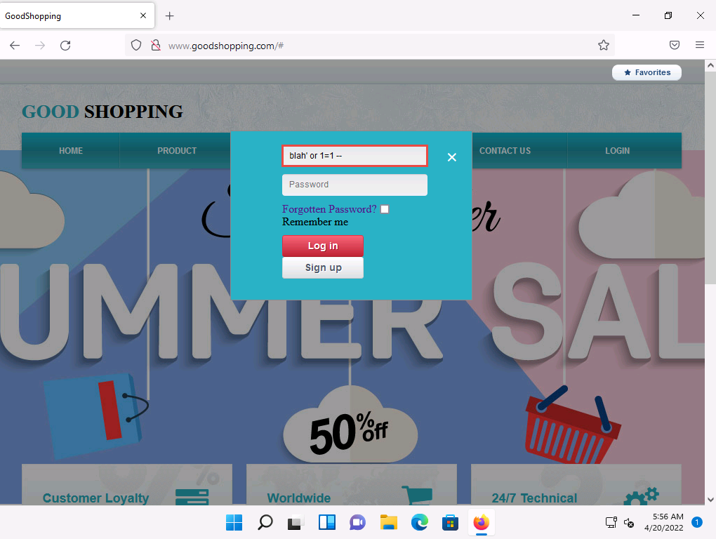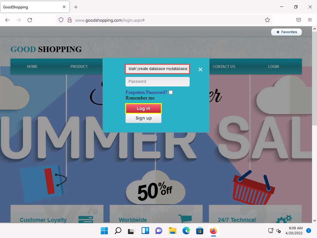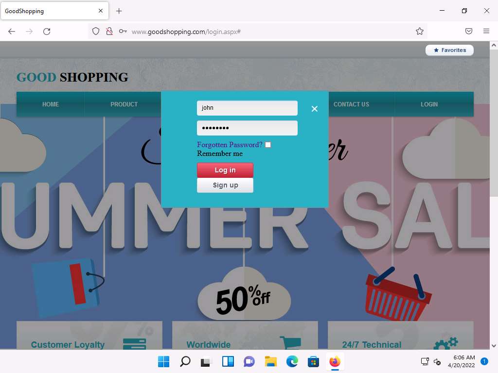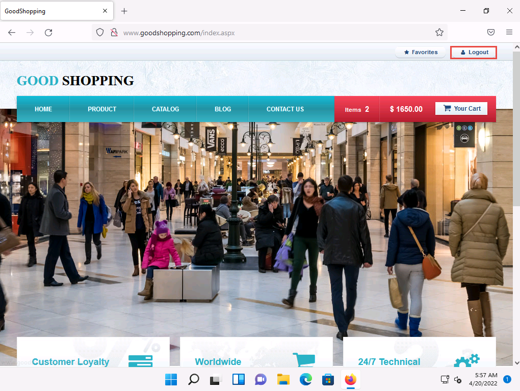 2022-04-20_14-32-37.png Click Windows 11 to switch back to the Windows 11 machine and go to the browser where the GoodShopping website is open.
